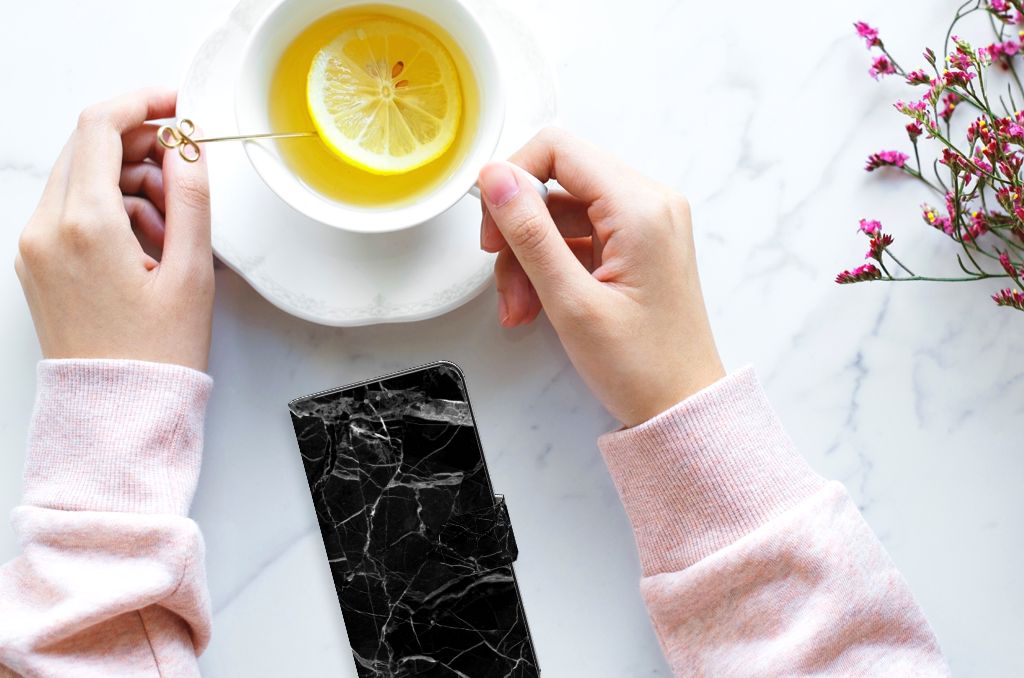 Motorola Edge 30 Neo Bookcase Marmer Zwart - Origineel Cadeau Vader