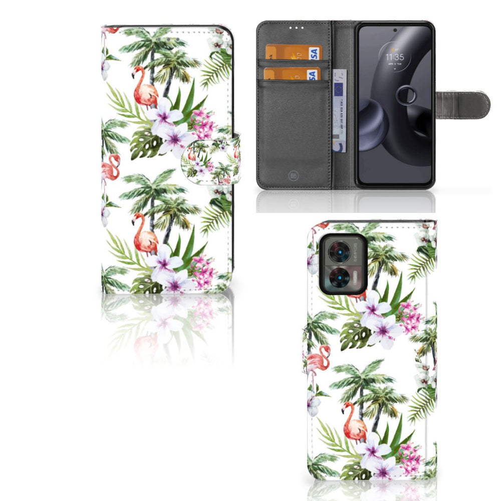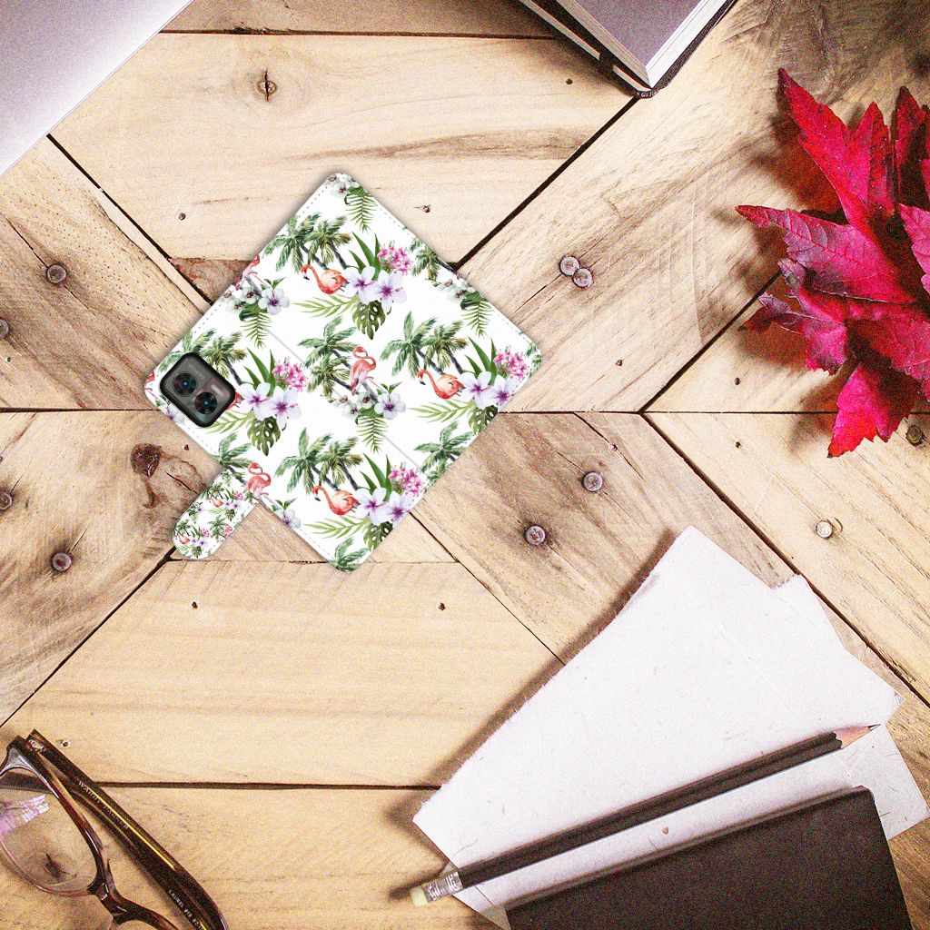 Motorola Edge 30 Neo Telefoonhoesje met Pasjes Flamingo Palms