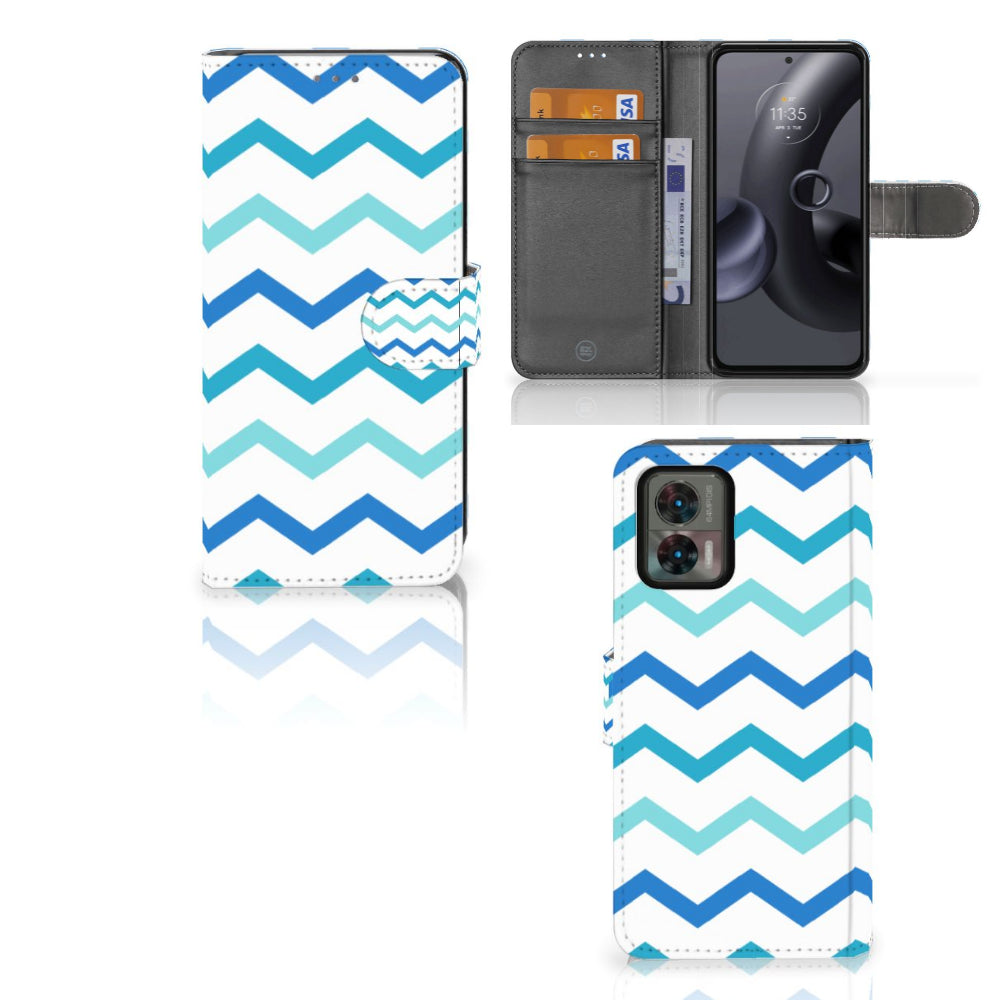 Motorola Edge 30 Neo Telefoon Hoesje Zigzag Blauw