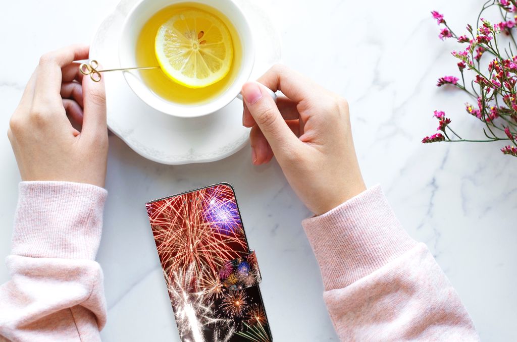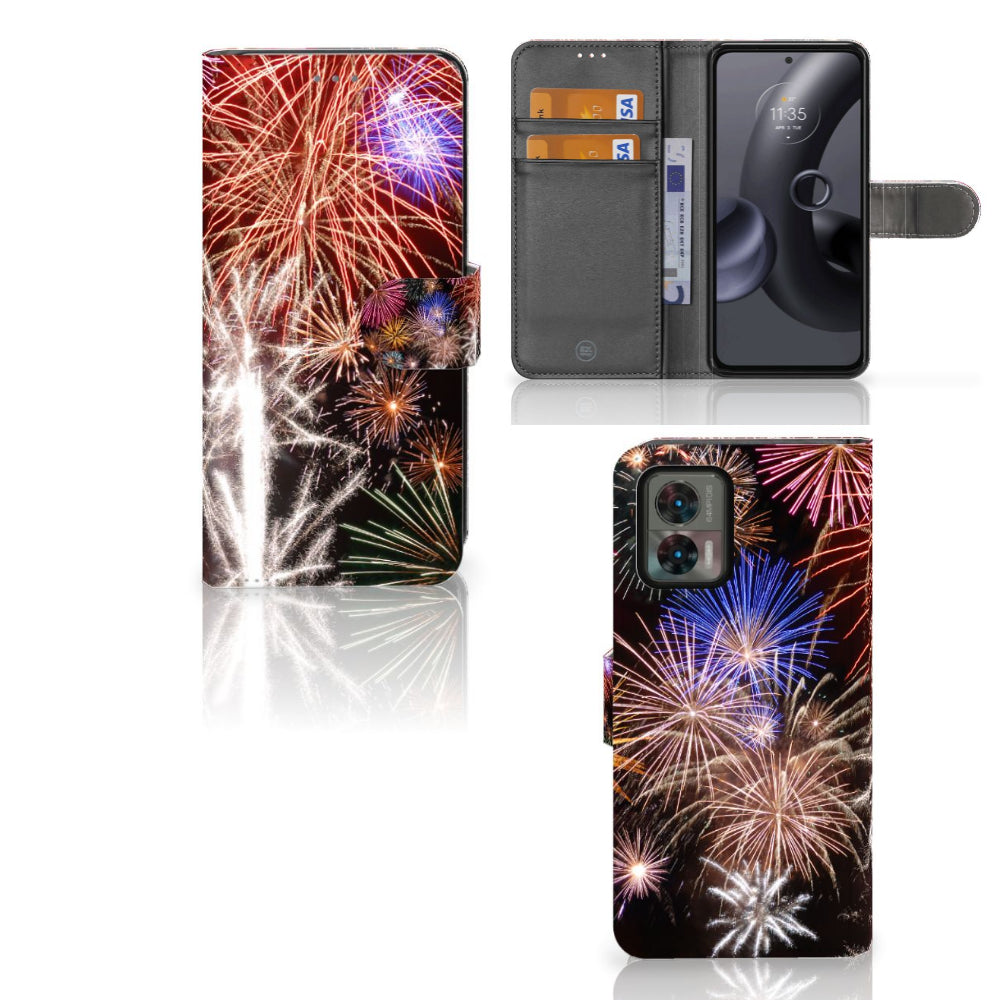 Motorola Edge 30 Neo Wallet Case met Pasjes Vuurwerk