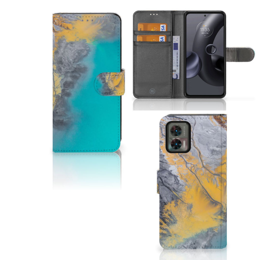 Motorola Edge 30 Neo Bookcase Marble Blue Gold