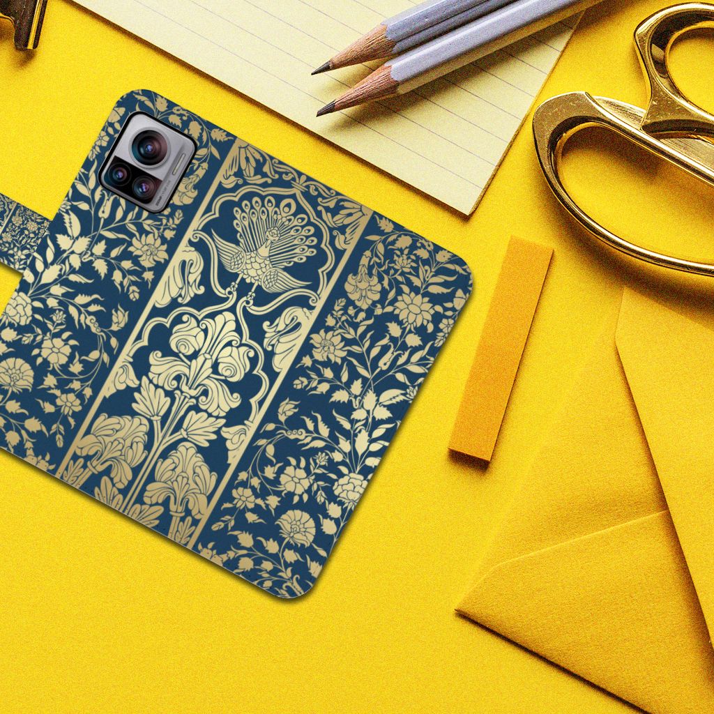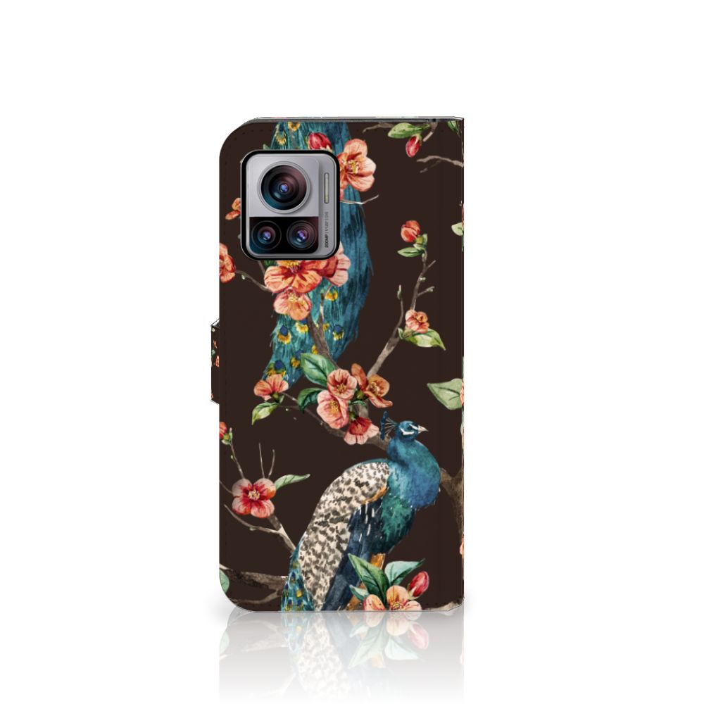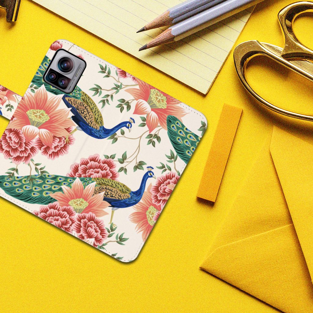 Motorola Edge 30 Ultra Telefoonhoesje met Pasjes Pauw met Bloemen