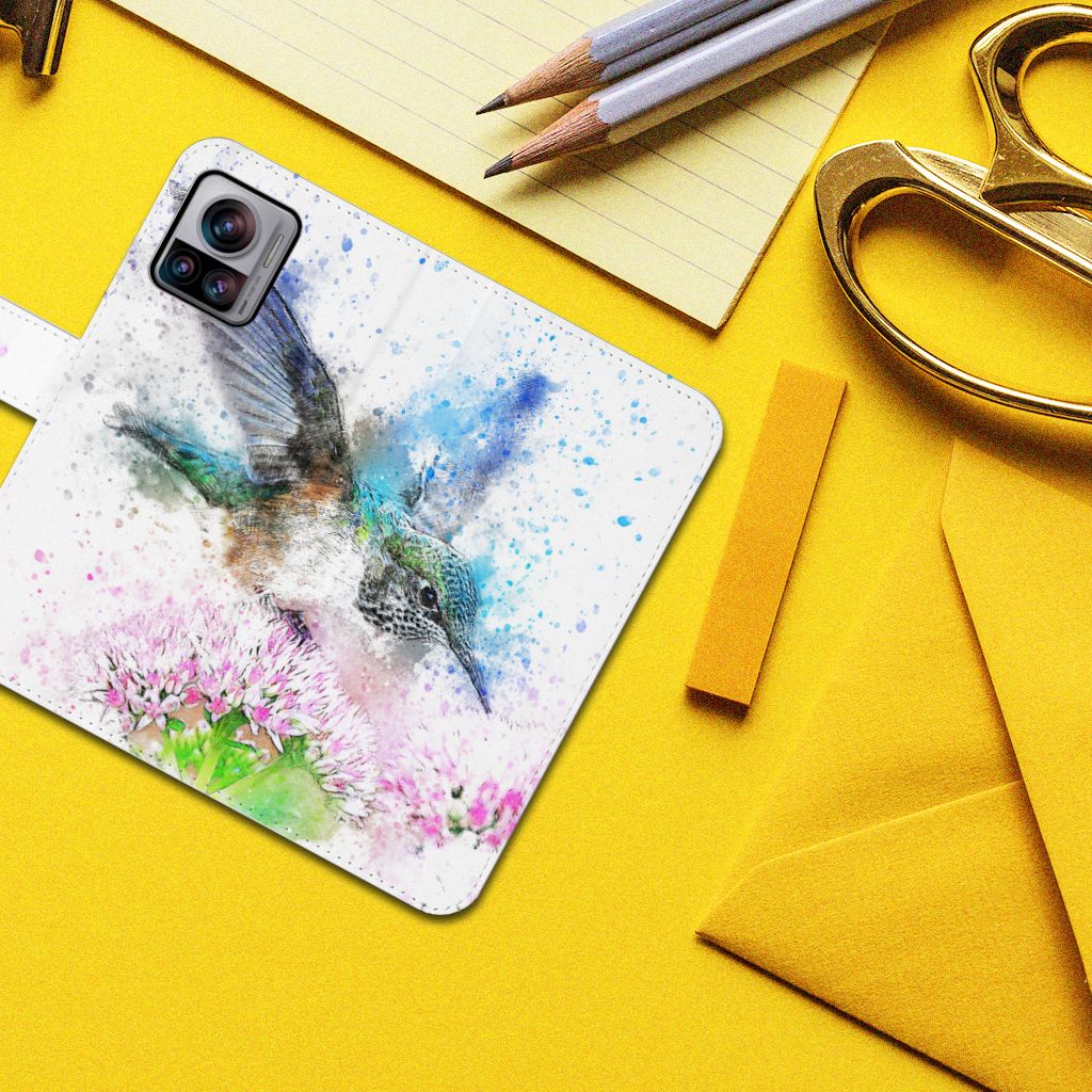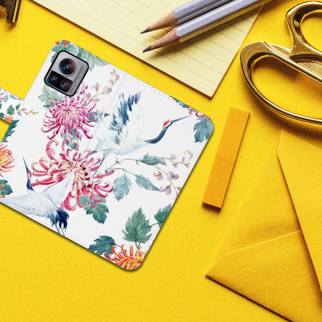 Motorola Edge 30 Ultra Telefoonhoesje met Pasjes Bird Flowers