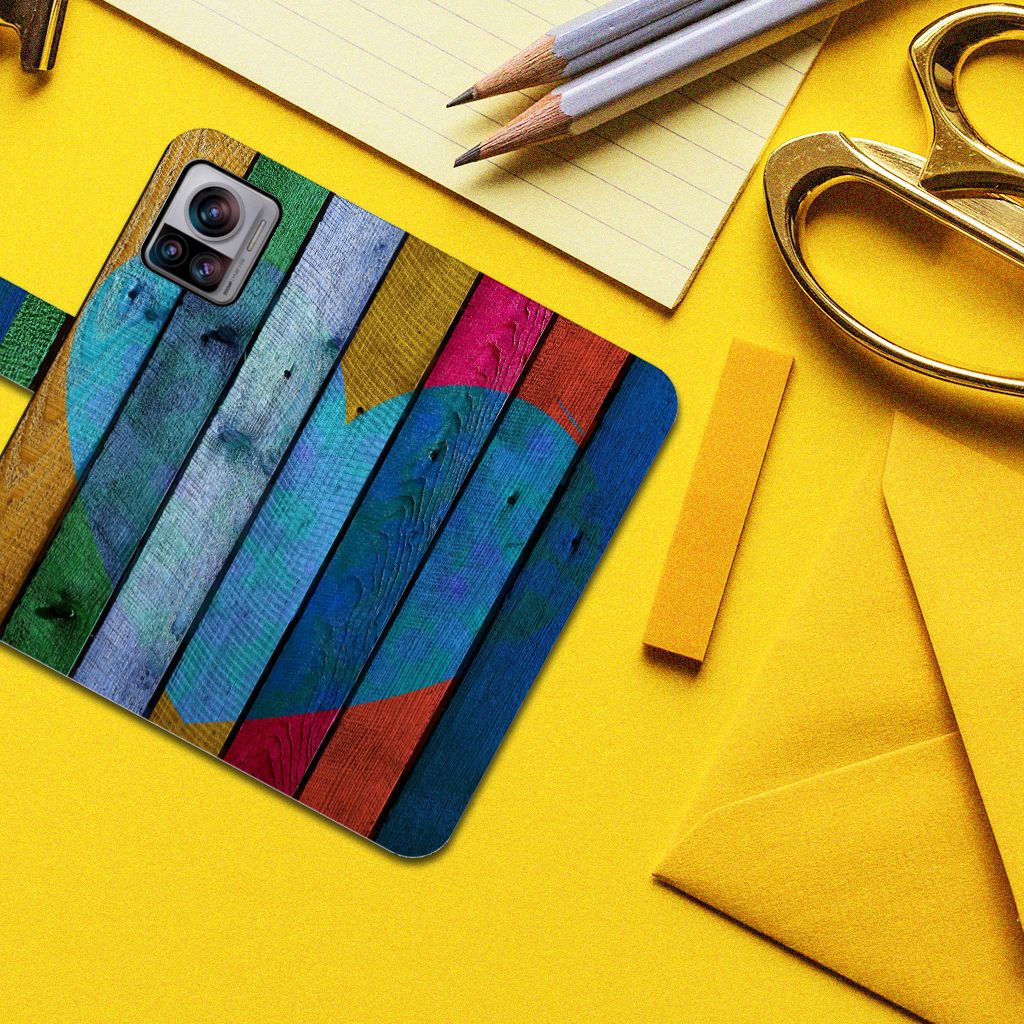 Motorola Edge 30 Ultra Book Style Case Wood Heart - Cadeau voor je Vriend
