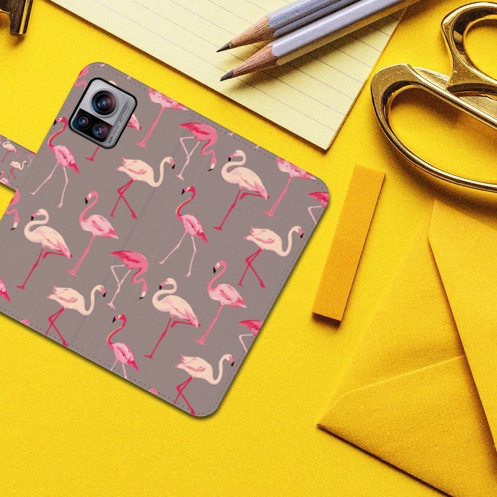 Motorola Edge 30 Ultra Telefoonhoesje met Pasjes Flamingo