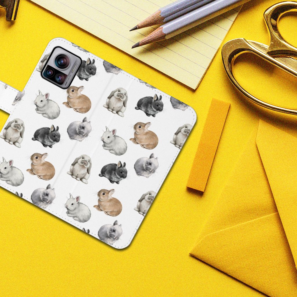 Telefoonhoesje met Pasjes voor Motorola Edge 30 Ultra Konijntjes