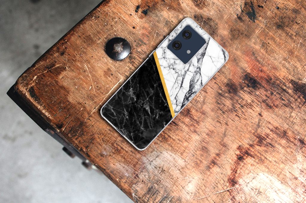 Motorola Edge 40 Neo TPU Siliconen Hoesje Marmer Wit Zwart - Origineel Cadeau Man