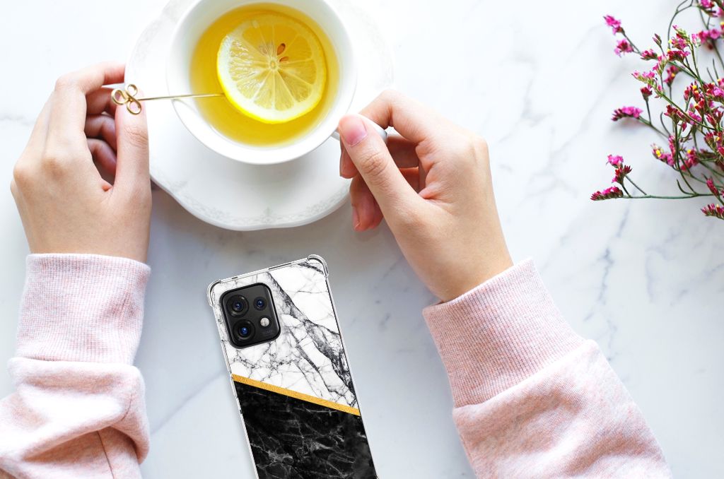 Motorola Edge 40 Pro Anti-Shock Hoesje Marmer Wit Zwart - Origineel Cadeau Man