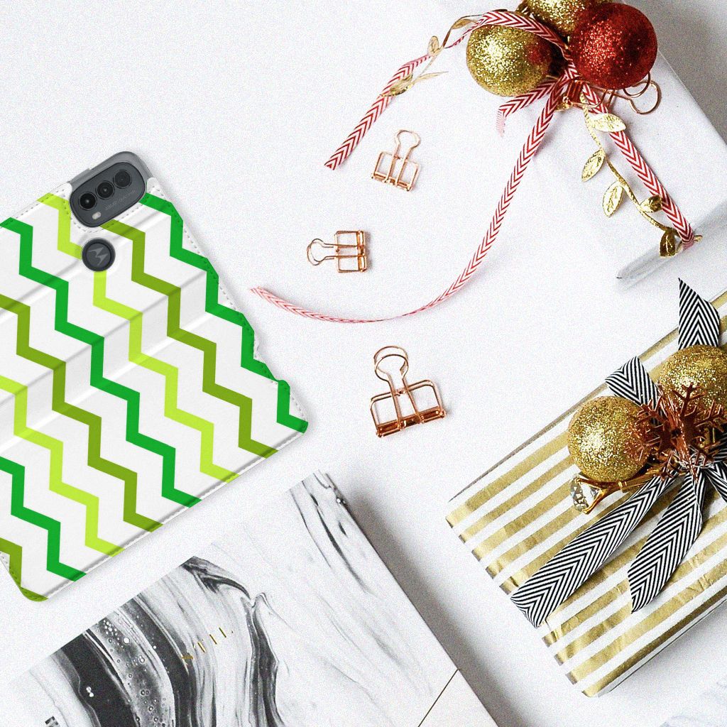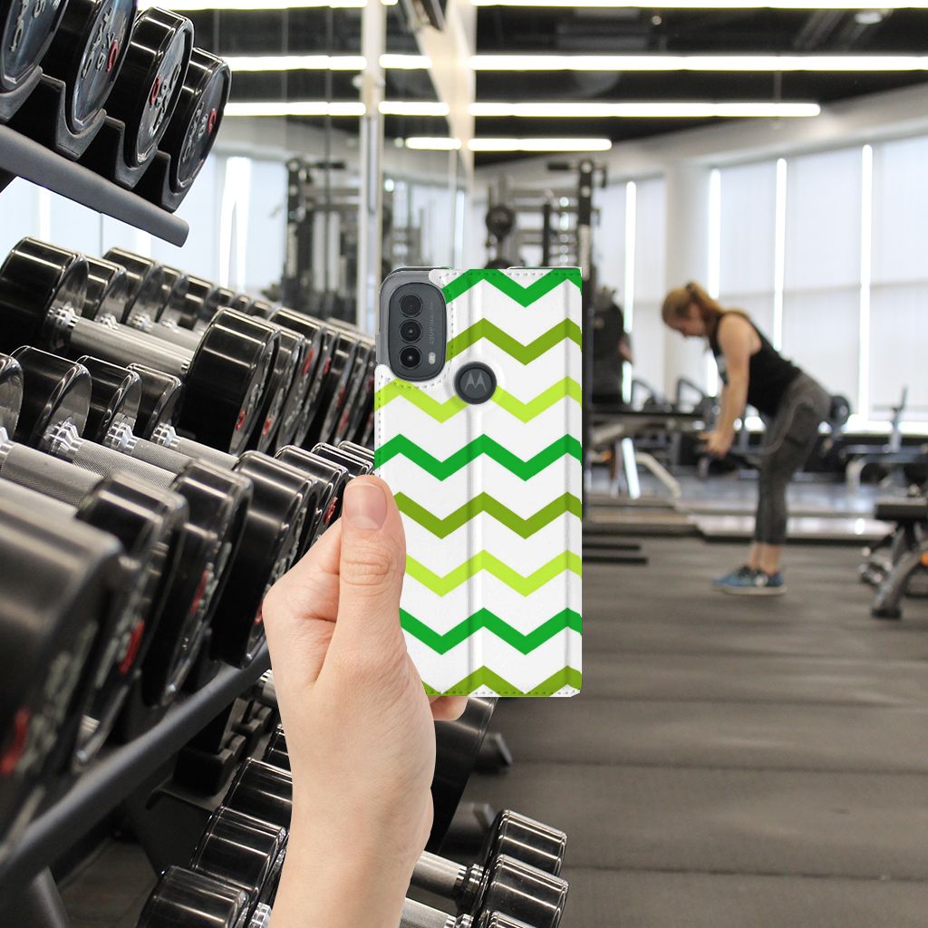 Motorola Moto E20 Hoesje met Magneet Zigzag Groen