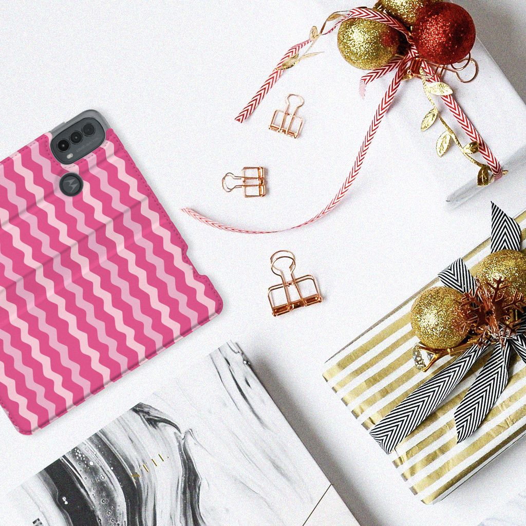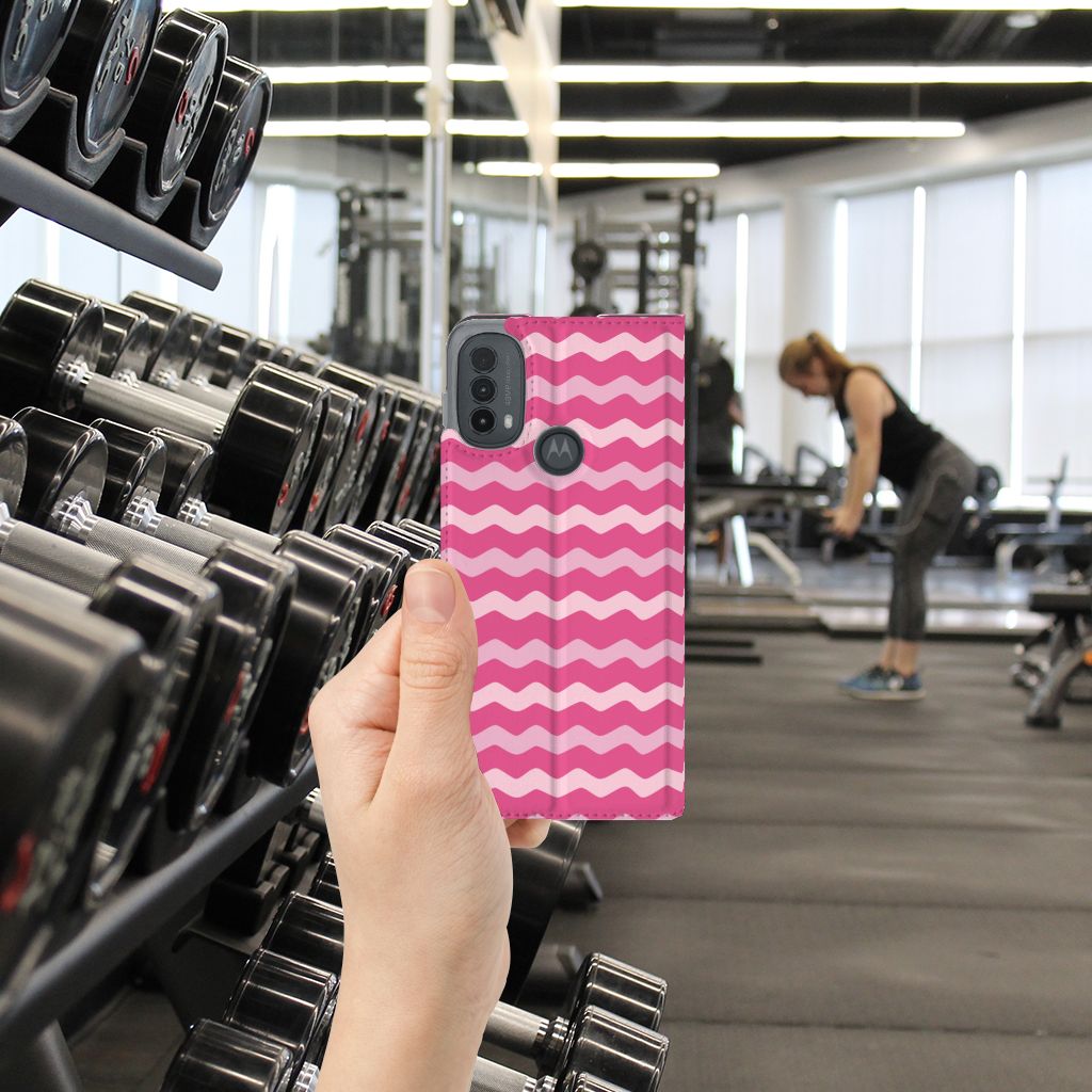 Motorola Moto E20 Hoesje met Magneet Waves Pink