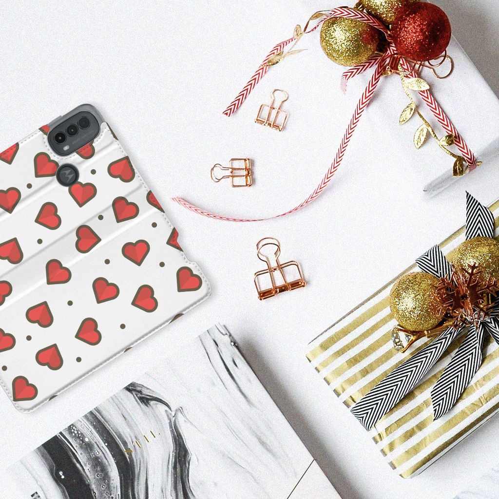 Motorola Moto E20 Hoesje met Magneet Hearts