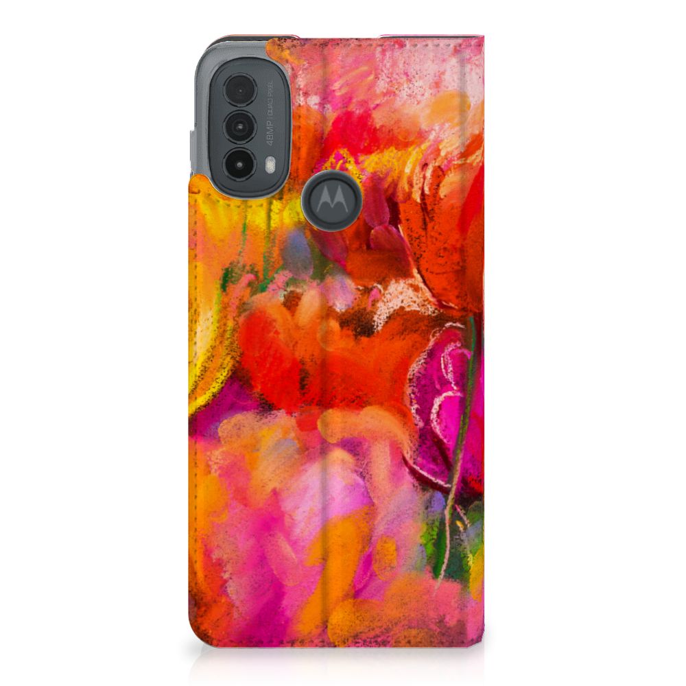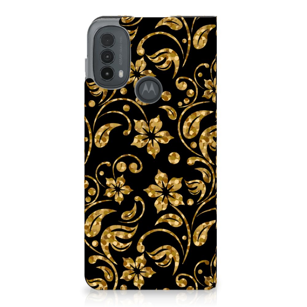 Motorola Moto E20 Smart Cover Gouden Bloemen
