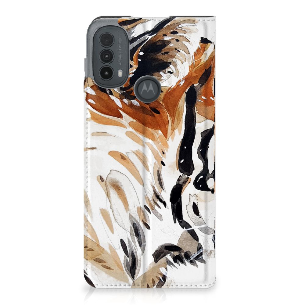 Bookcase Motorola Moto E20 Watercolor Tiger