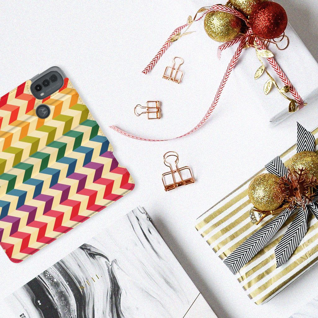 Motorola Moto E20 Hoesje met Magneet Zigzag Multi Color