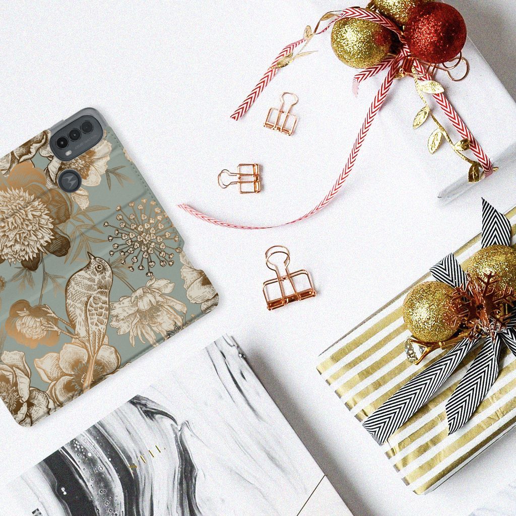 Smart Cover voor Motorola Moto E20 Vintage Bird Flowers