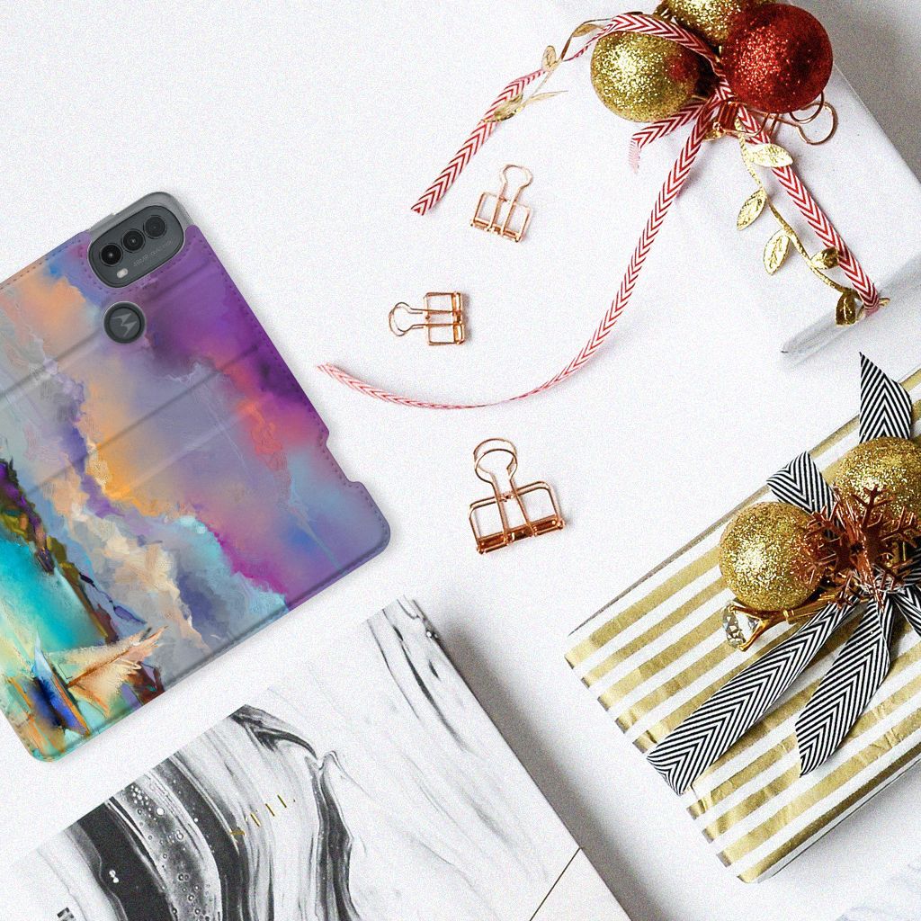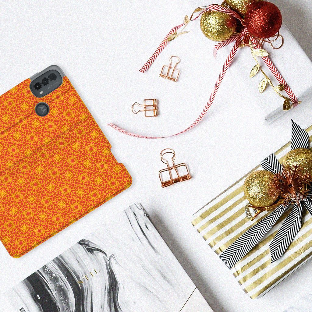 Motorola Moto E20 Hoesje met Magneet Batik Oranje