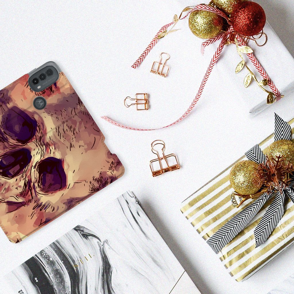 Mobiel BookCase Motorola Moto E20 Skullhead