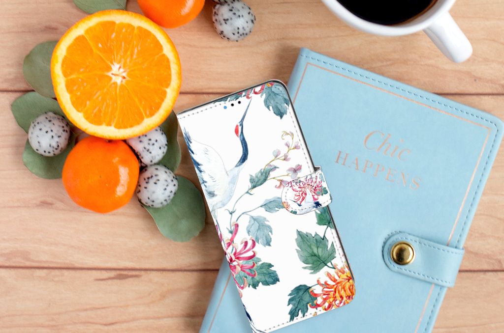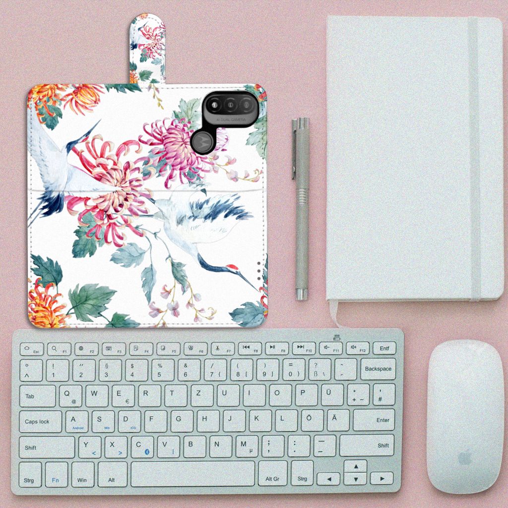 Motorola Moto E20 | E30 | E40 Telefoonhoesje met Pasjes Bird Flowers