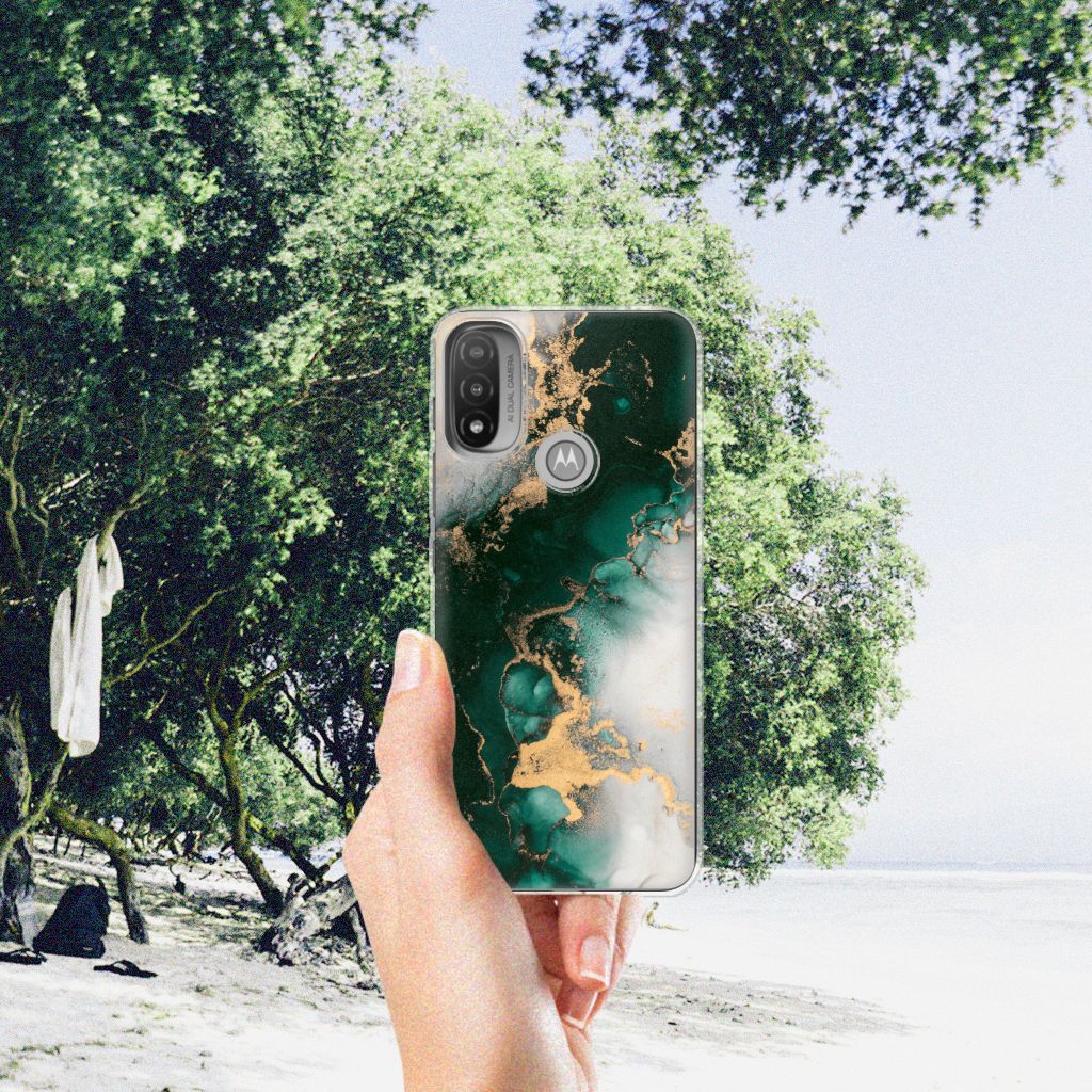 TPU Siliconen Hoesje voor Motorola Moto E20 | E40 Marmer Groen