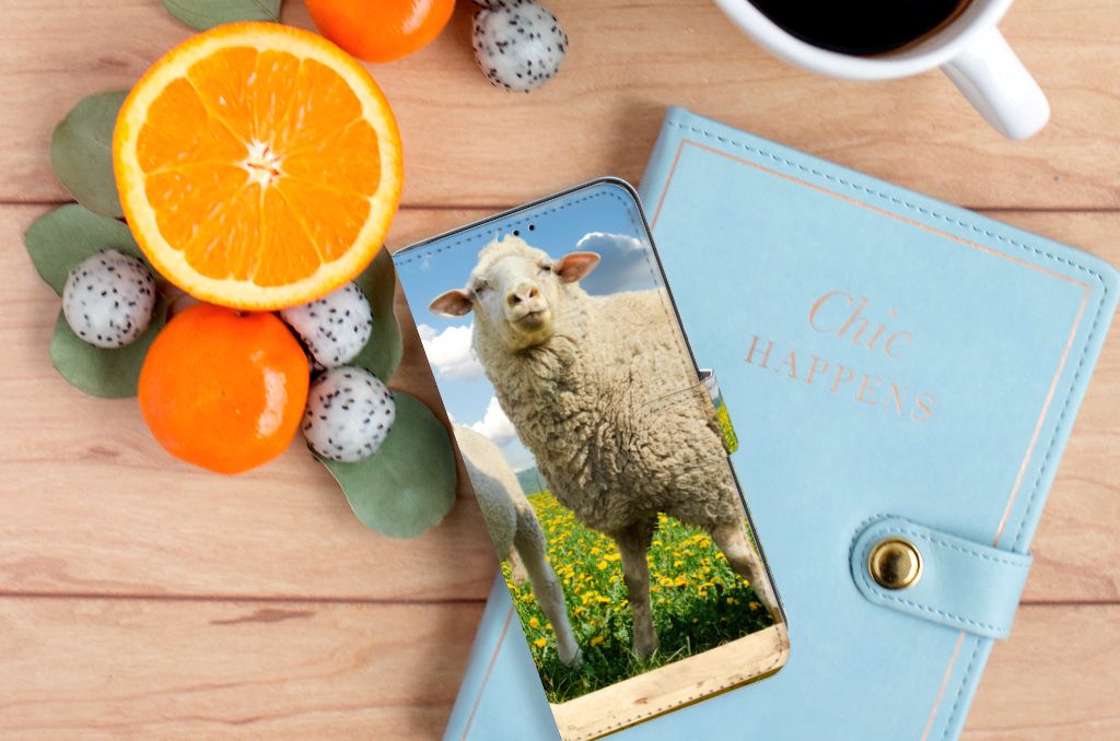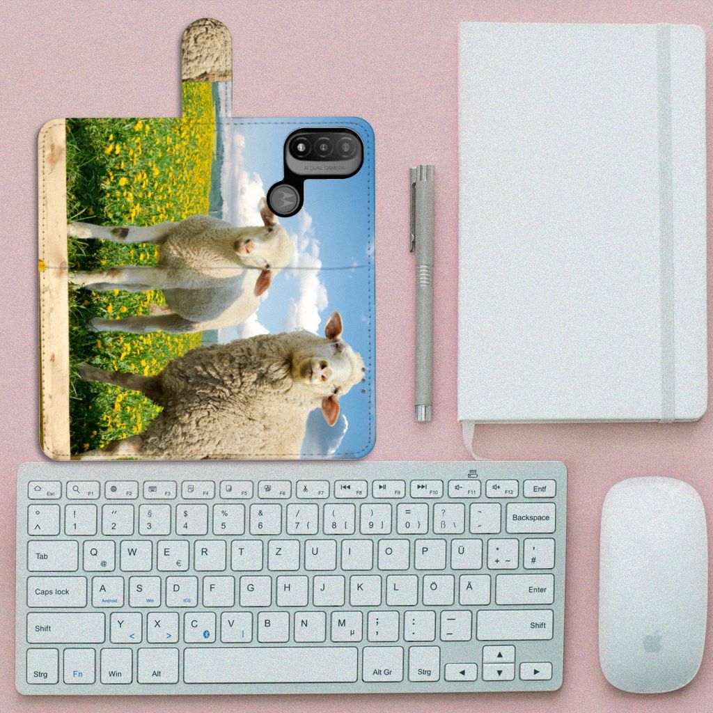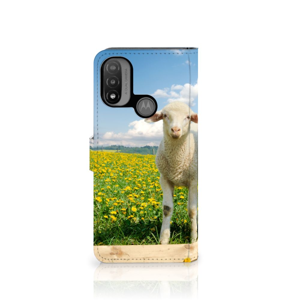 Motorola Moto E20 | E30 | E40 Telefoonhoesje met Pasjes Schaap en Lammetje