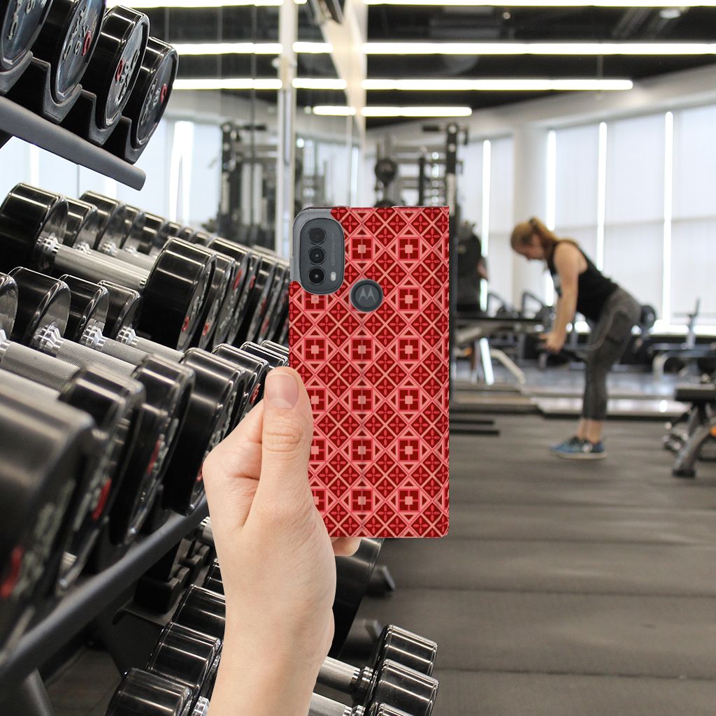 Motorola Moto E20 Hoesje met Magneet Batik Rood