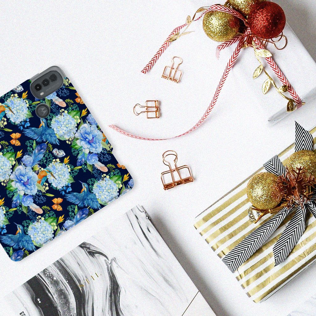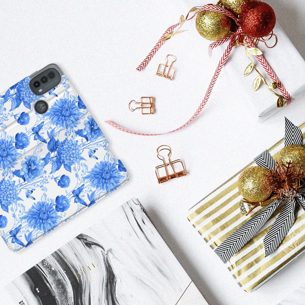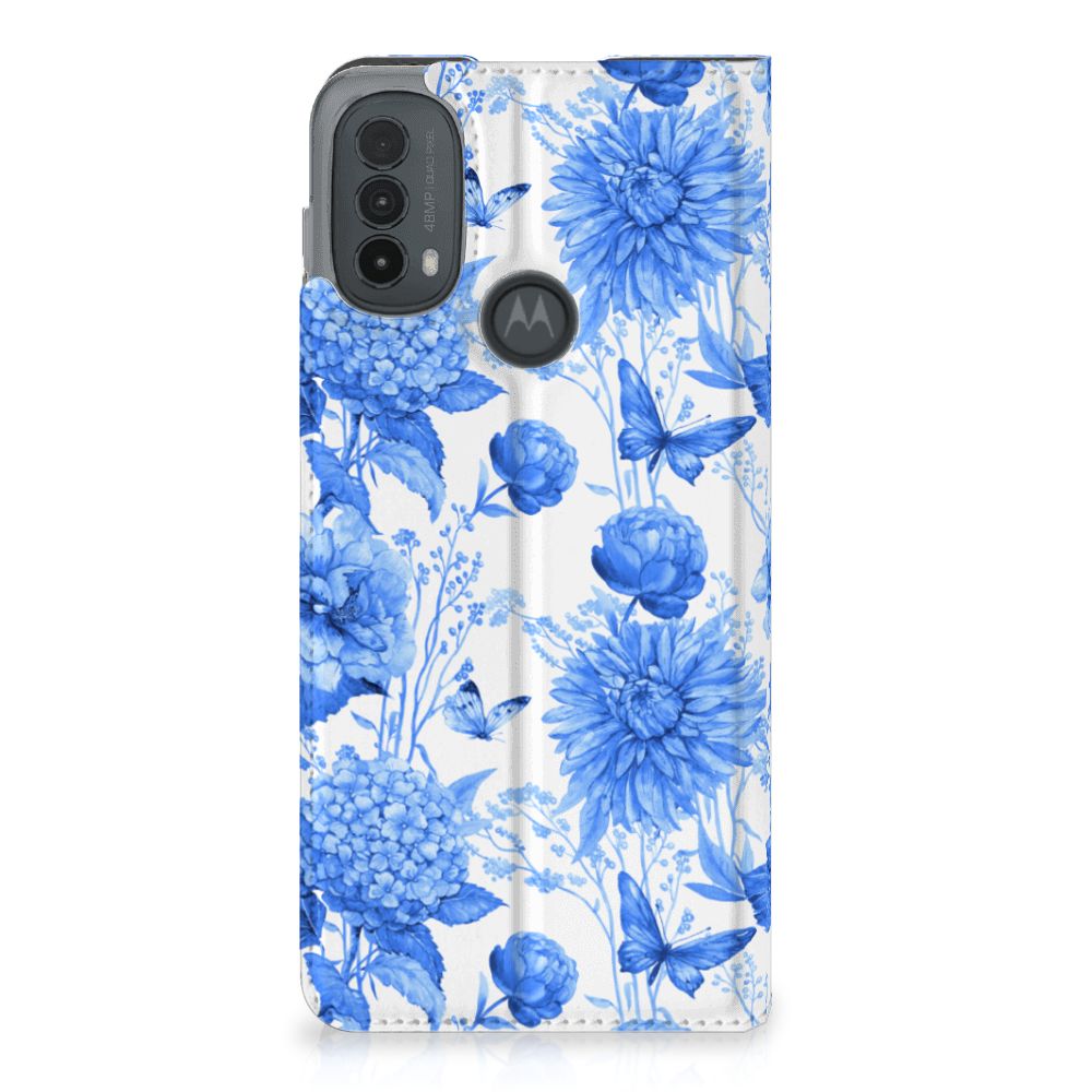 Smart Cover voor Motorola Moto E20 Flowers Blue