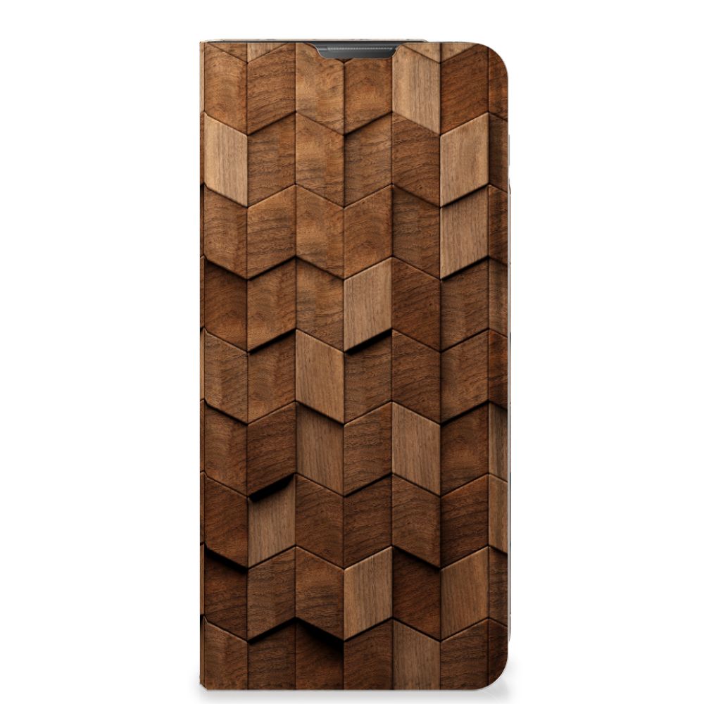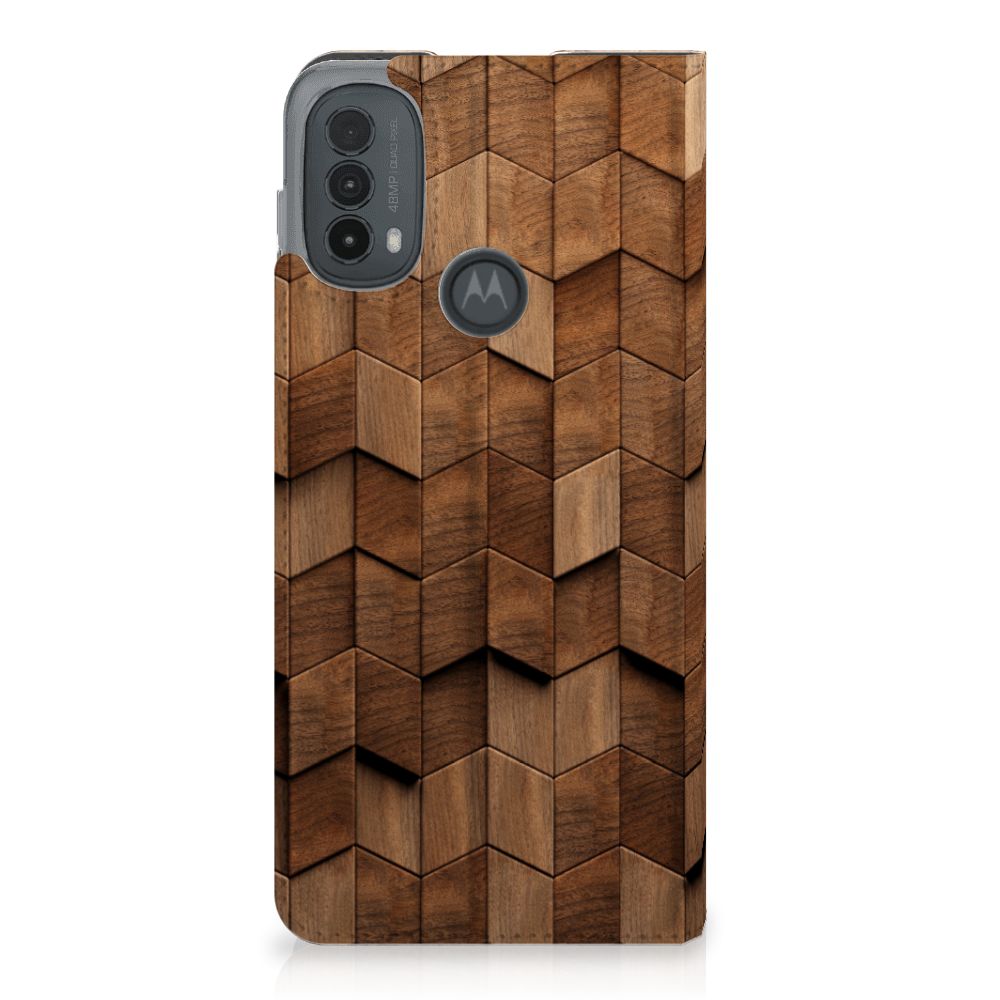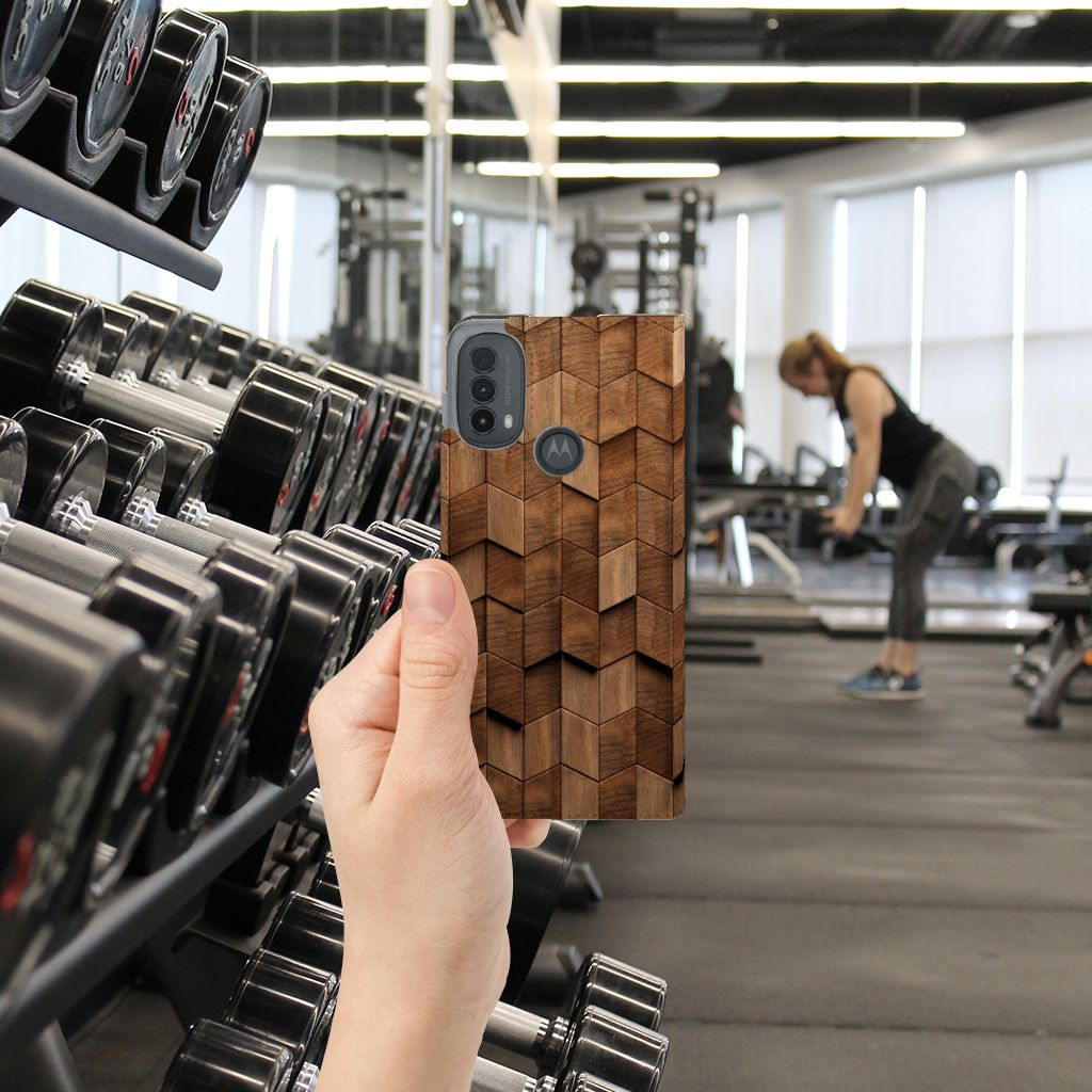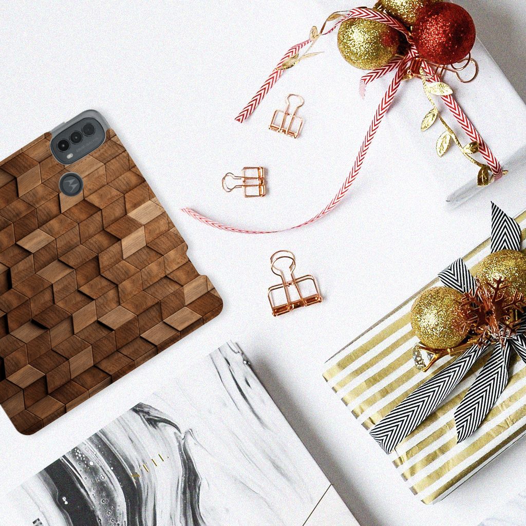 Book Wallet Case voor Motorola Moto E20 Wooden Cubes