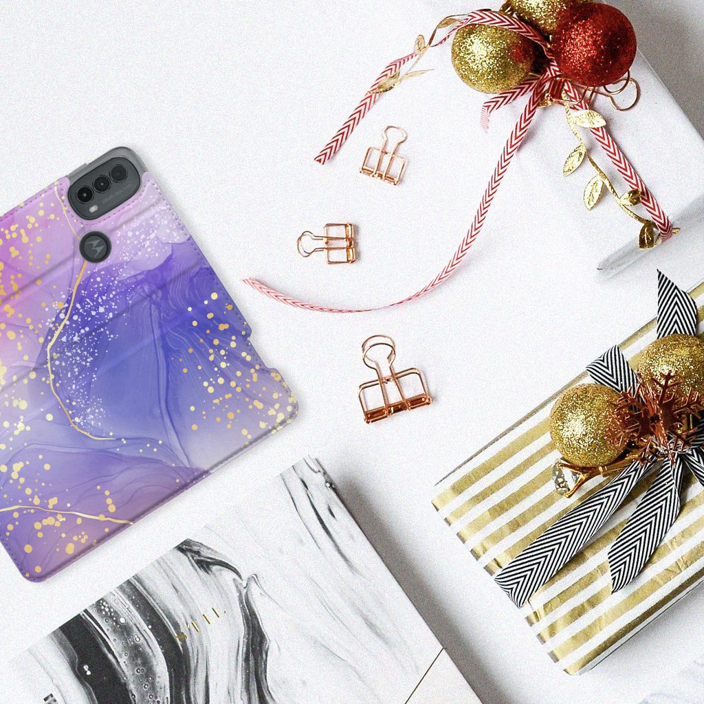 Bookcase voor Motorola Moto E20 Watercolor Paars