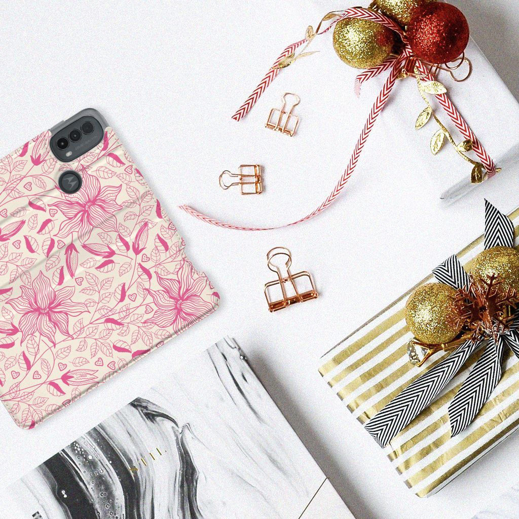 Motorola Moto E20 Smart Cover Pink Flowers