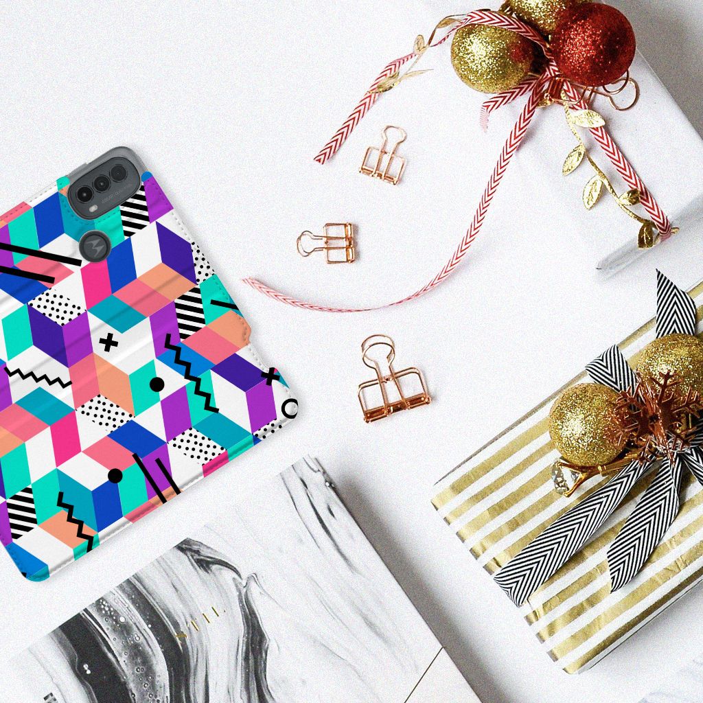 Motorola Moto E20 Stand Case Blokken Kleurrijk