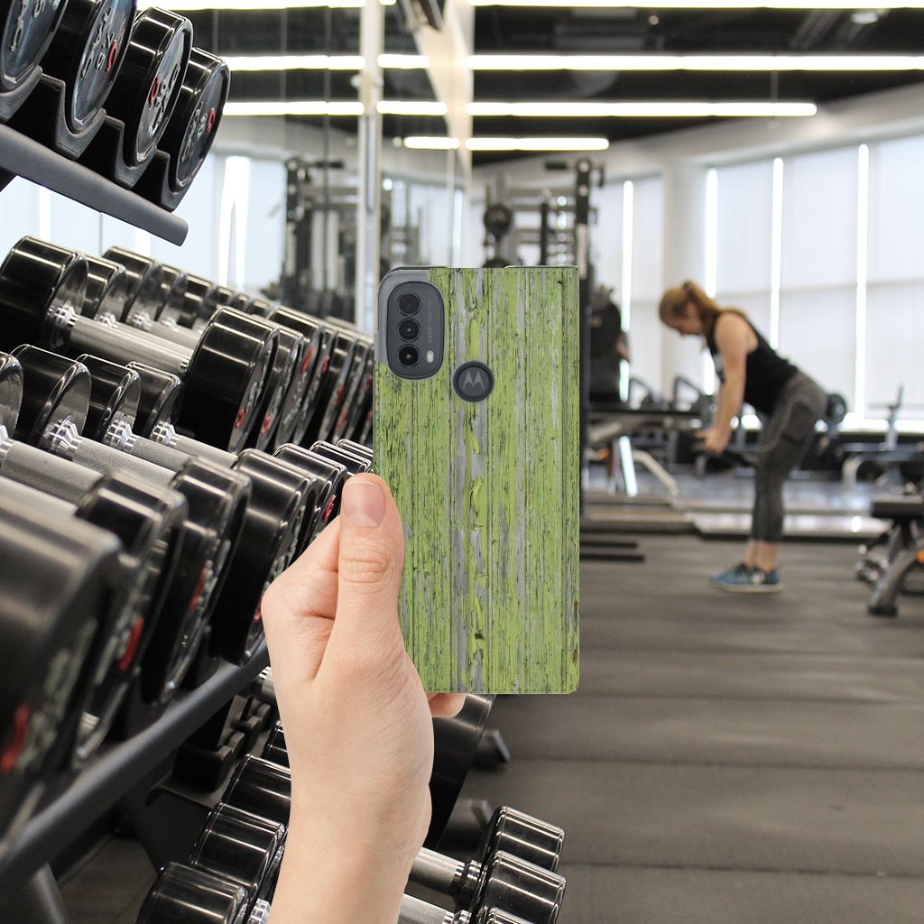 Motorola Moto E20 Book Wallet Case Green Wood