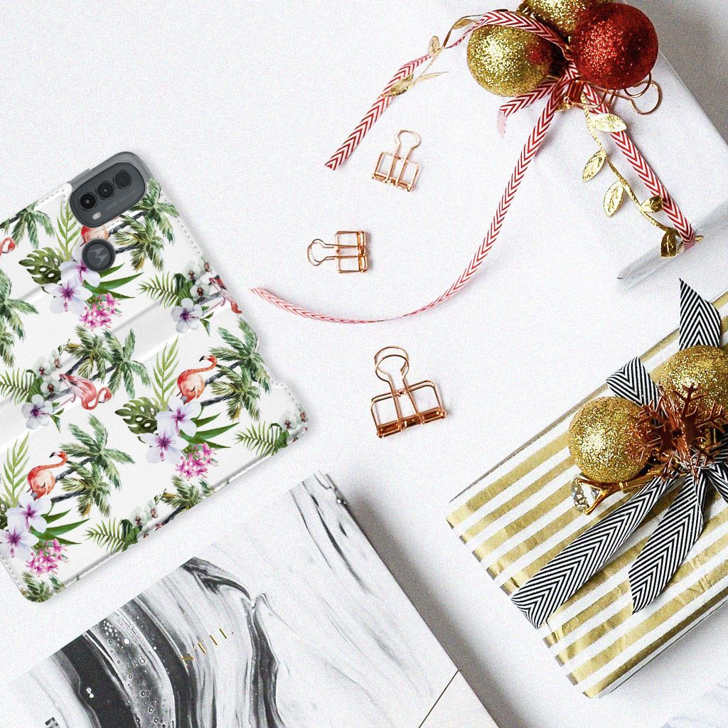Motorola Moto E20 Hoesje maken Flamingo Palms