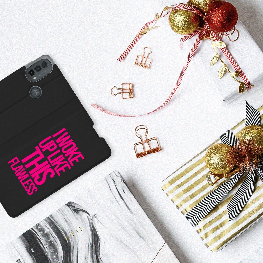 Motorola Moto E20 Hoesje met tekst Woke Up - Origineel Cadeau Zelf Maken