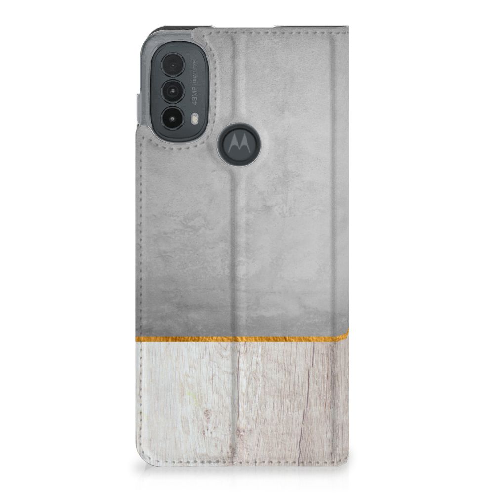 Motorola Moto E20 Book Wallet Case Wood Concrete
