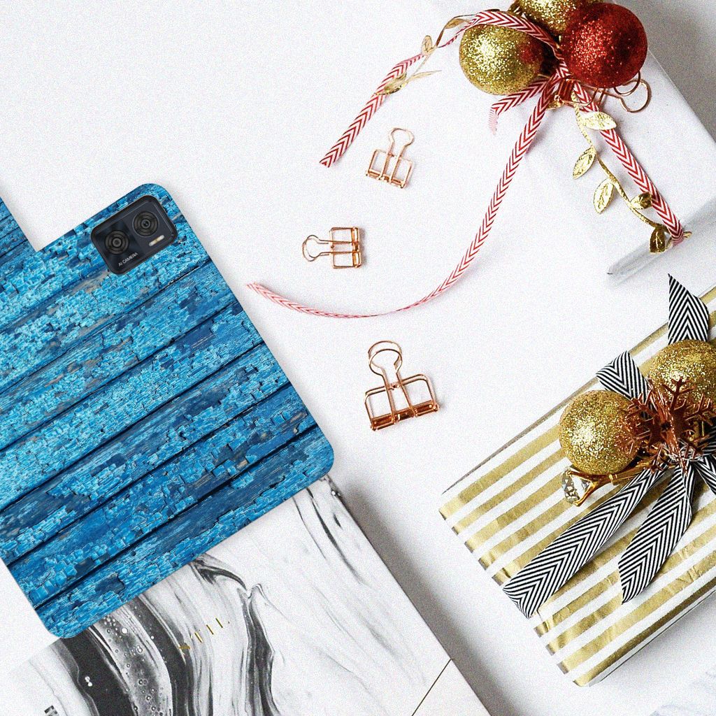 Motorola Moto E22 | E22i Book Style Case Wood Blue