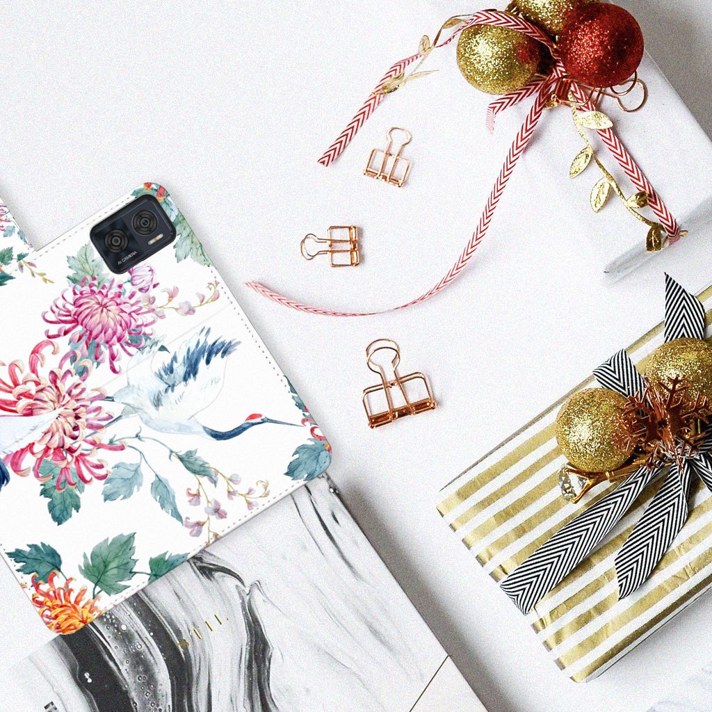 Motorola Moto E22 | E22i Telefoonhoesje met Pasjes Bird Flowers