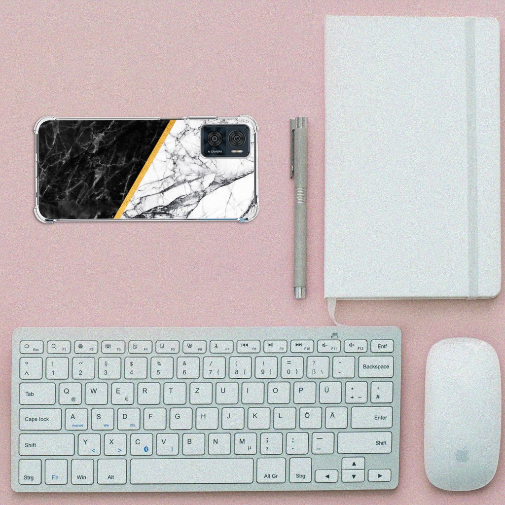 Motorola Moto E22 | E22i Anti-Shock Hoesje Marmer Wit Zwart - Origineel Cadeau Man