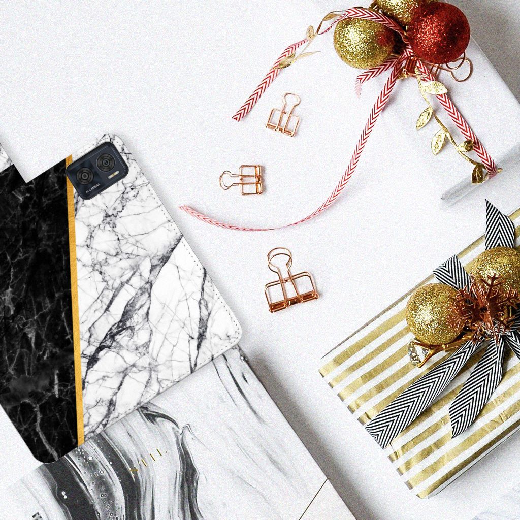 Motorola Moto E22 | E22i Bookcase Marmer Wit Zwart - Origineel Cadeau Man