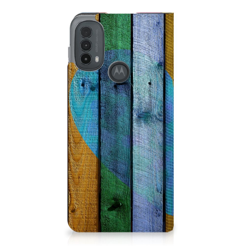 Motorola Moto E20 Book Wallet Case Wood Heart - Cadeau voor je Vriend