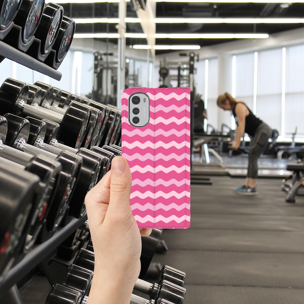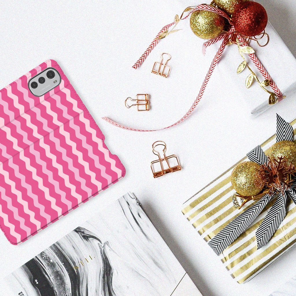 Motorola Moto E32 | Moto E32s Hoesje met Magneet Waves Pink
