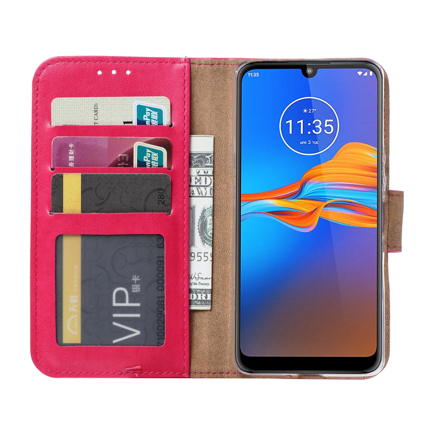 Motorola Moto E6 Plus Hoesje Roze met Pasjeshouder