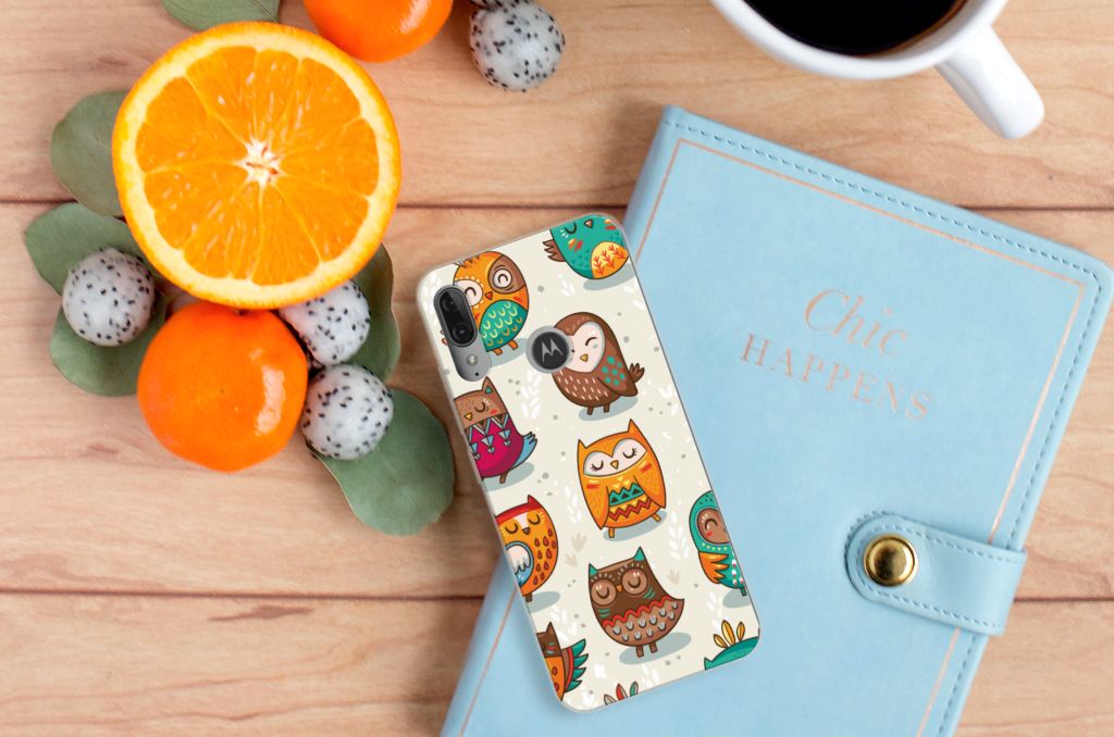 Motorola Moto E6 Plus TPU Hoesje Vrolijke Uilen
