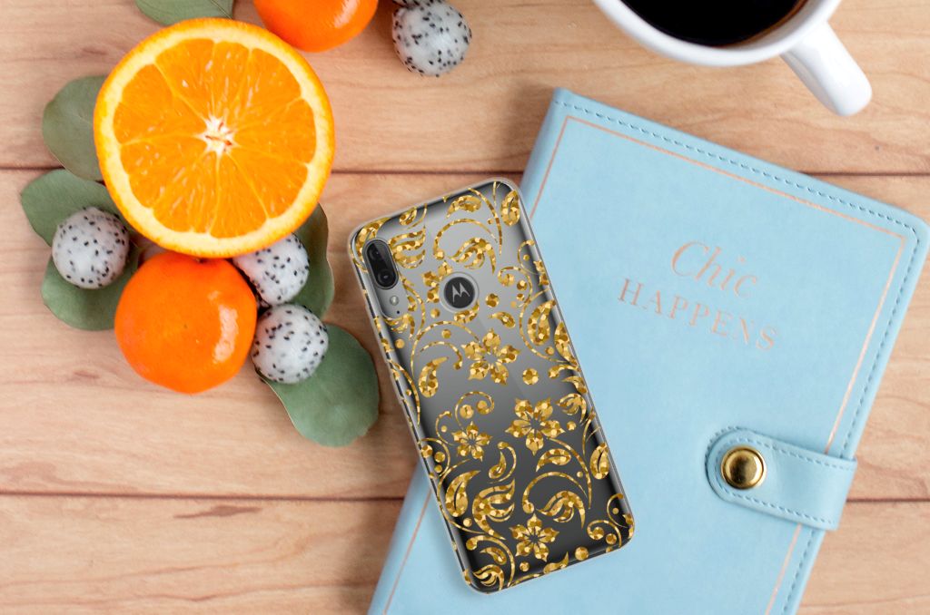 Motorola Moto E6 Plus TPU Case Gouden Bloemen