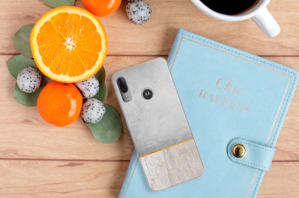 Motorola Moto E6 Plus Bumper Hoesje Wood Concrete