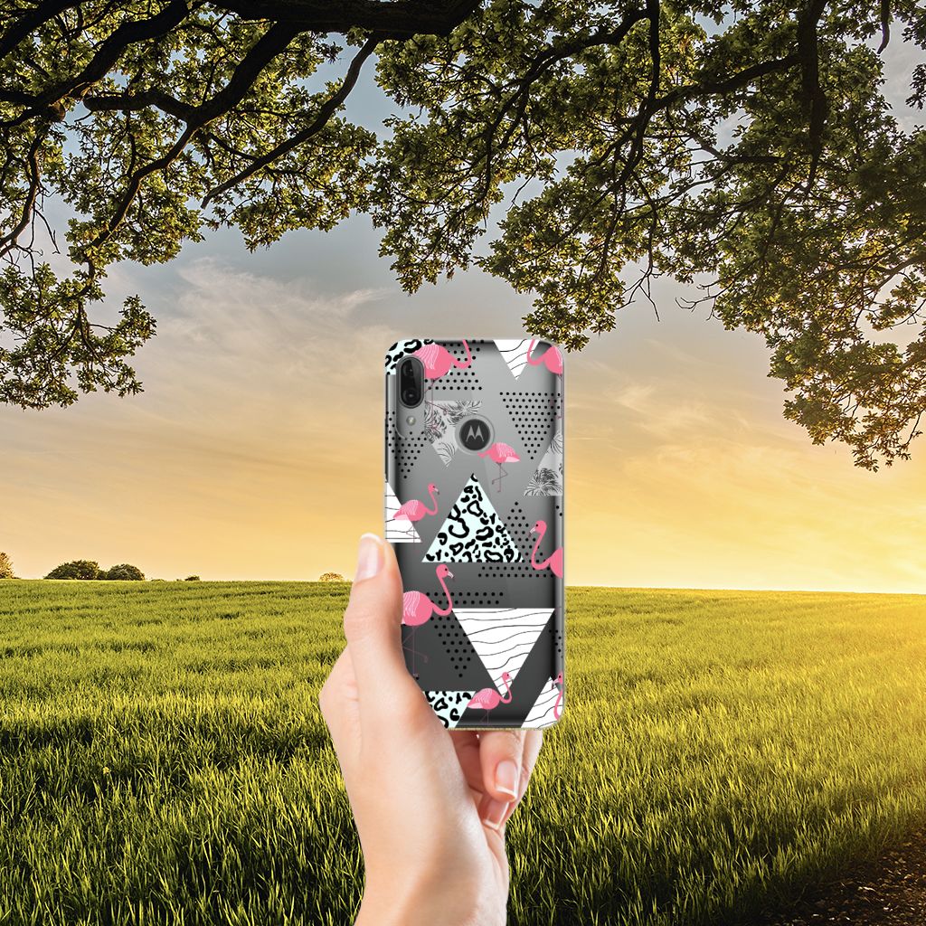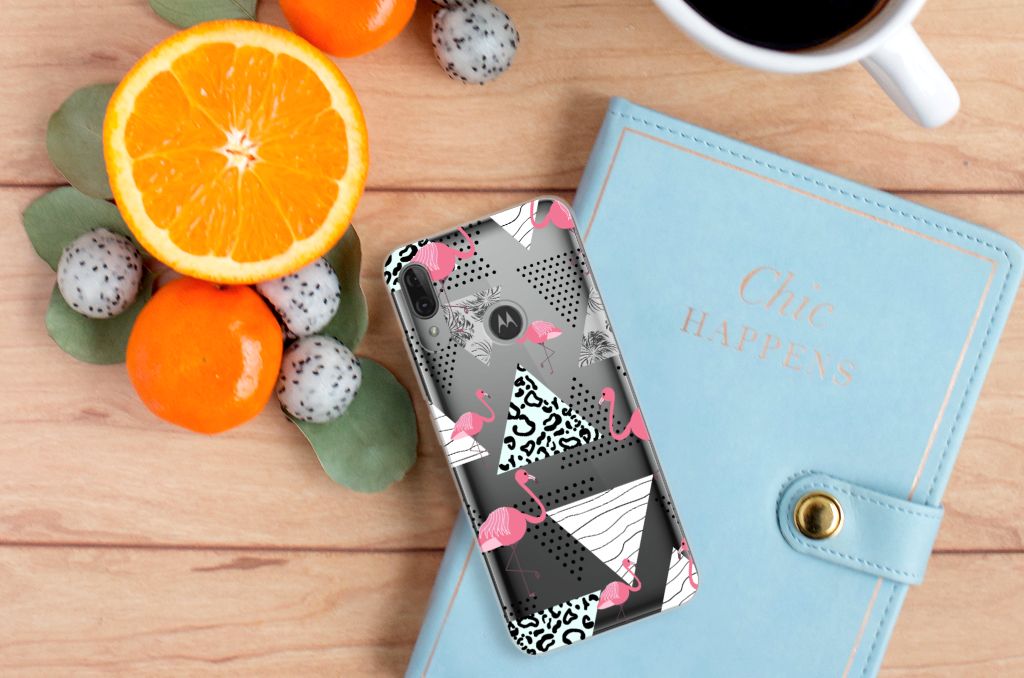 Motorola Moto E6 Plus TPU Hoesje Flamingo Triangle