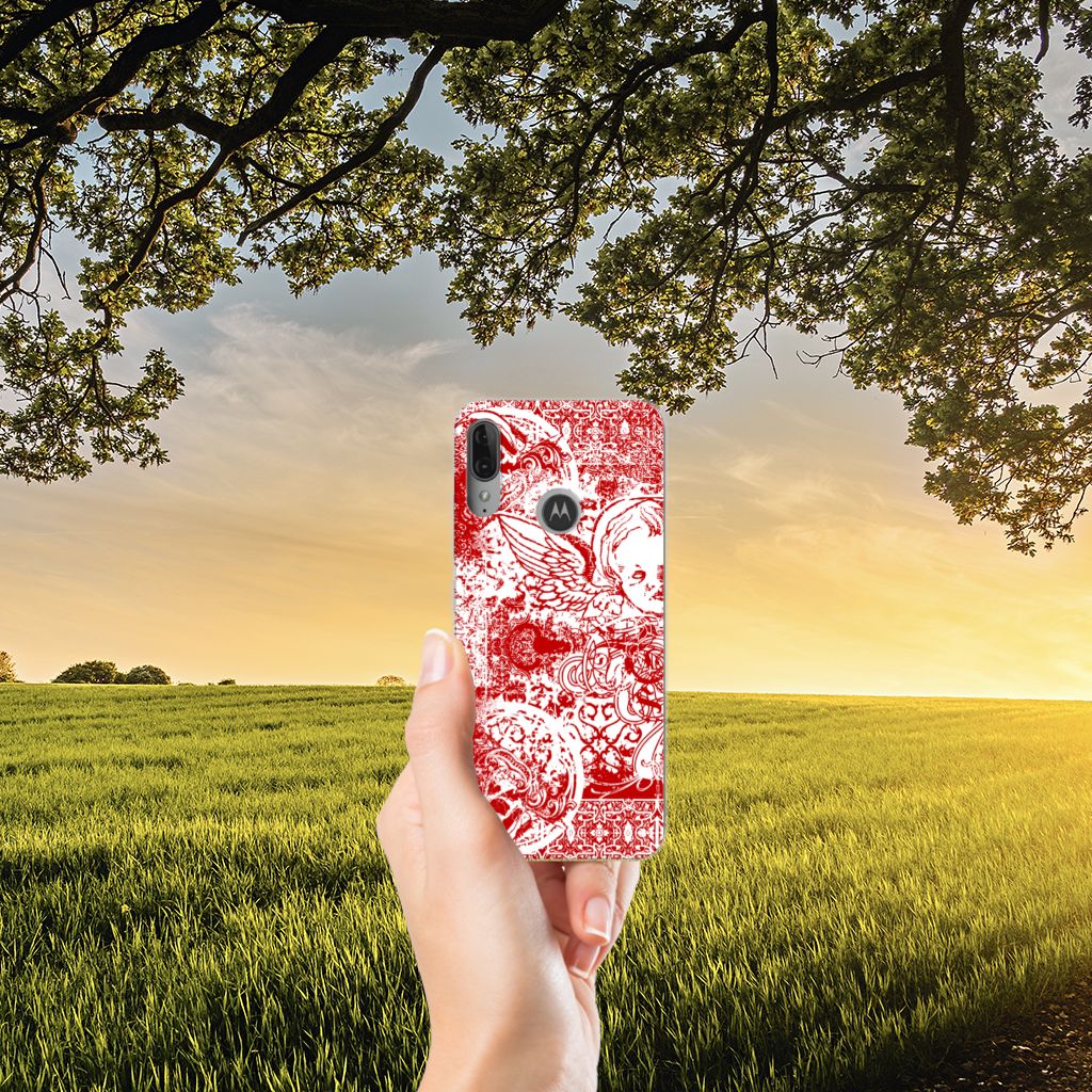 Silicone Back Case Motorola Moto E6 Plus Angel Skull Rood