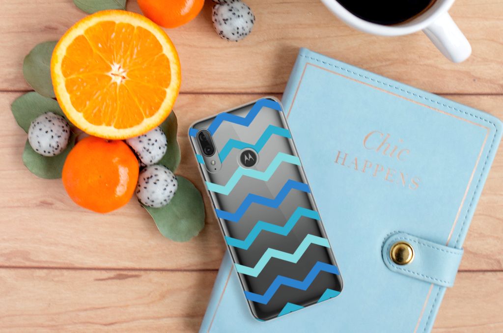 Motorola Moto E6 Plus TPU bumper Zigzag Blauw