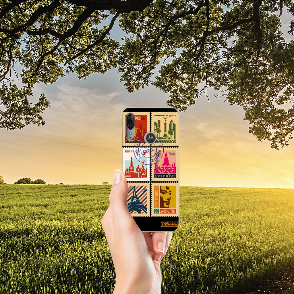 Motorola Moto E6 Plus Siliconen Back Cover Postzegels