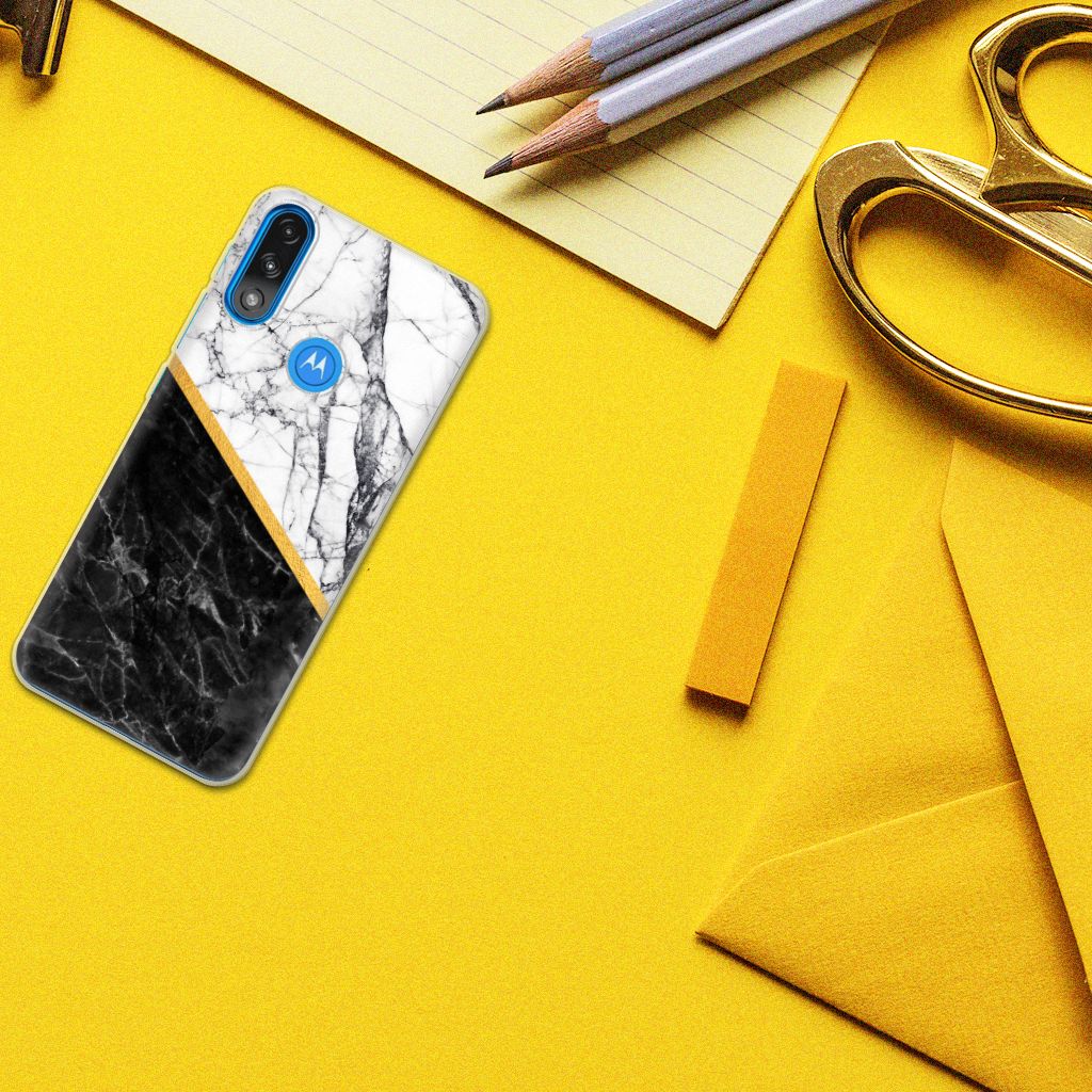 Motorola Moto E7/E7i Power TPU Siliconen Hoesje Marmer Wit Zwart - Origineel Cadeau Man