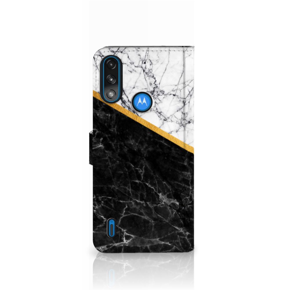 Motorola Moto E7i Power | E7 Power Bookcase Marmer Wit Zwart - Origineel Cadeau Man